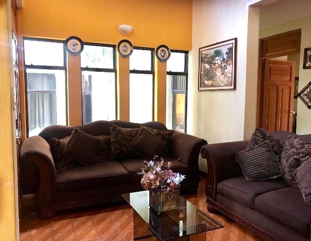 Cuenta con 462 vrs2 de terreno, 333mts2 de construcción, 2 niveles, portón, 3 jardines, baño de visitas, estudio, sala-comedor, cocina, desayunador, sala familiar, 4 dormitorios; el principal con walk-in closet y secundarios con closet, 3.5 baños, área de lavandería, dormitorio de servicio, balcón, patio, terraza, jacuzzi y 3 parqueos.