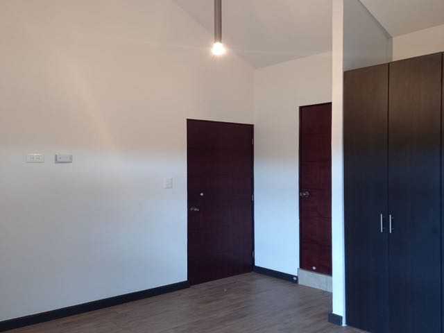 Detalles de construcción: piso cerámico con acabado de madera, puertas de madera, ventanas de PVC y calentador solar.