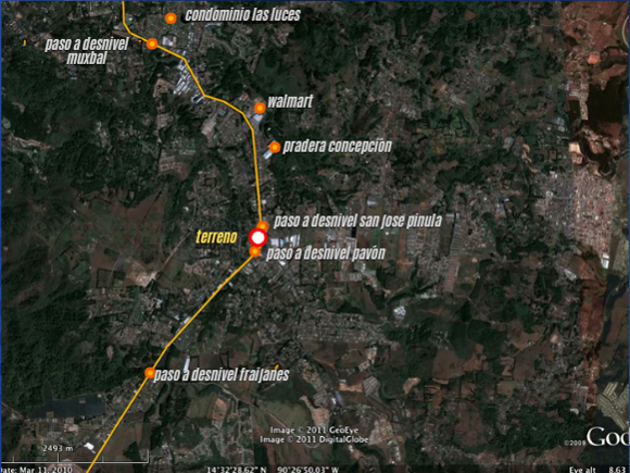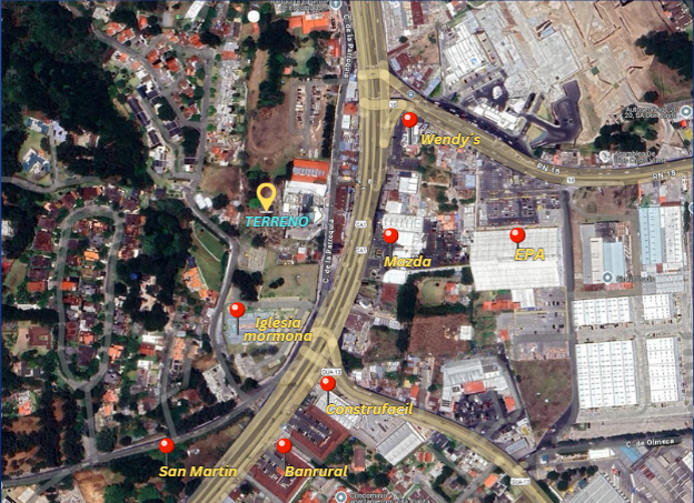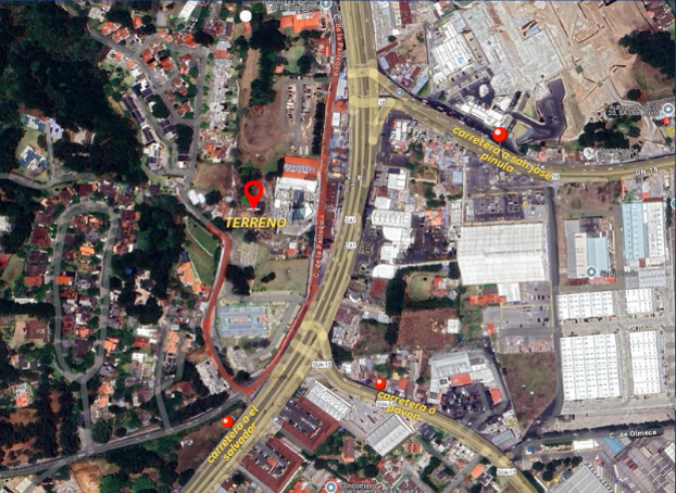 Sobre carril auxiliar, colinda con Scena Bussines Center y Scena Medical Center.